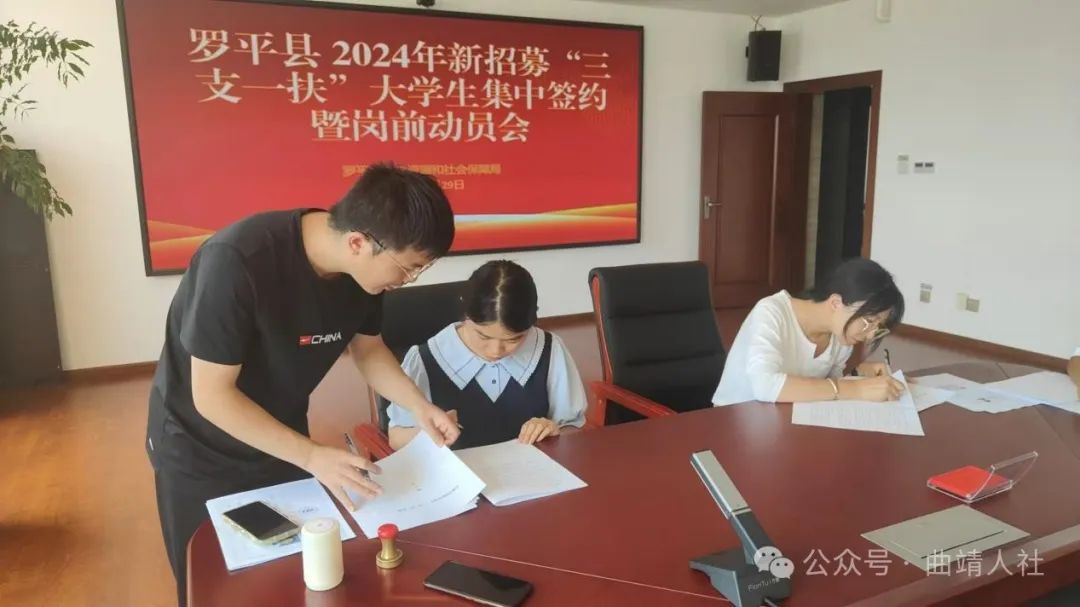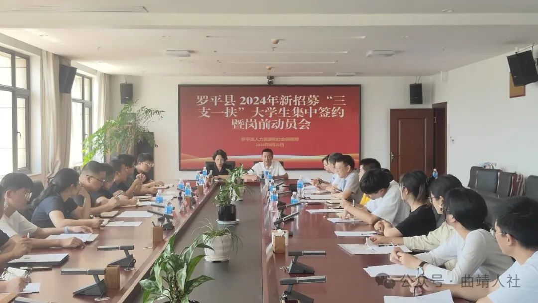 8月29日下午,罗平县人社局组织召开2024年新招募“三支一扶”大学生集中签约暨岗前动员会。县人社局、县卫健局、各服务单位及新招募大学生参加会议。
